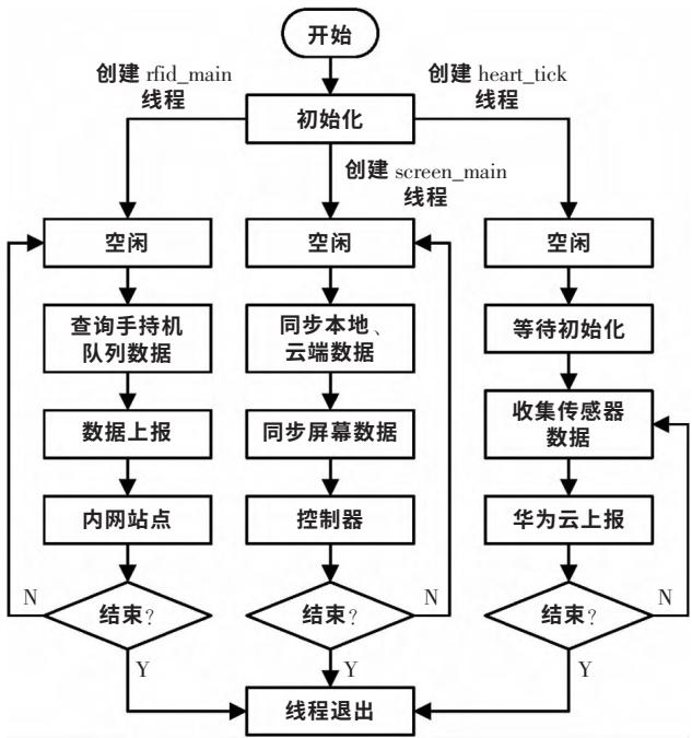 主控程序主要完成RFID信息处理、显示屏逻辑控制和云端数据上报3个任务(Task)。