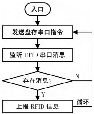 图5为手持机程序流程。主程序运行后,系统通过串口向高频RFID模块持续发送指令,启动盘存操作,并异步监听返回消息,将接收到的串口数据强制